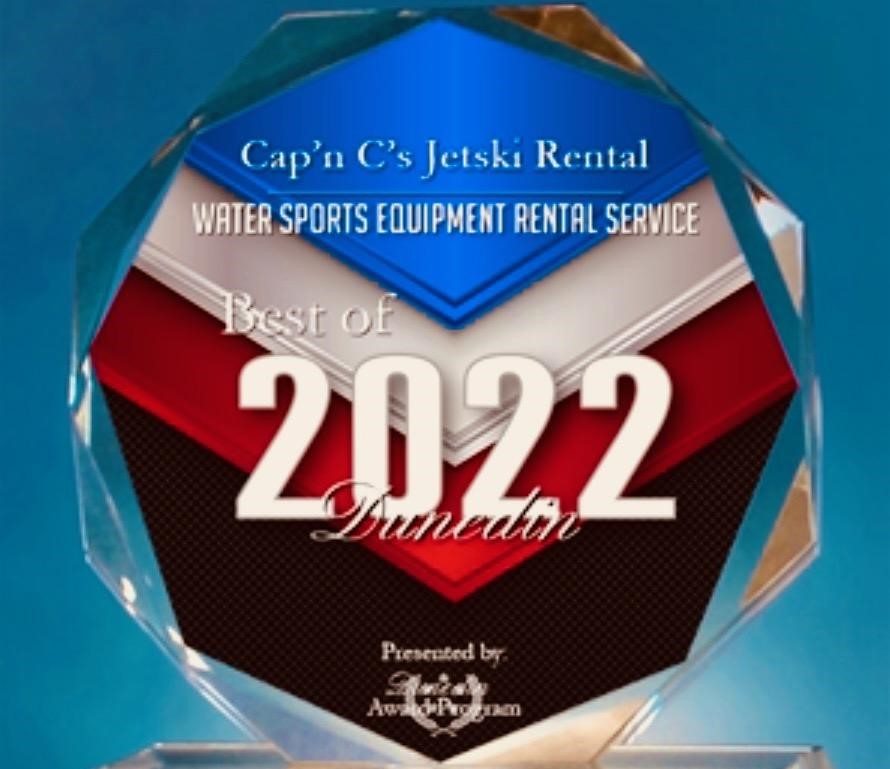 We are happy to announce that Cap’n C’s Jetski Rental has been selected as the Winner for the 2022 Best of Dunedin Awards in the category of Water Sports Equipment Rental Service.